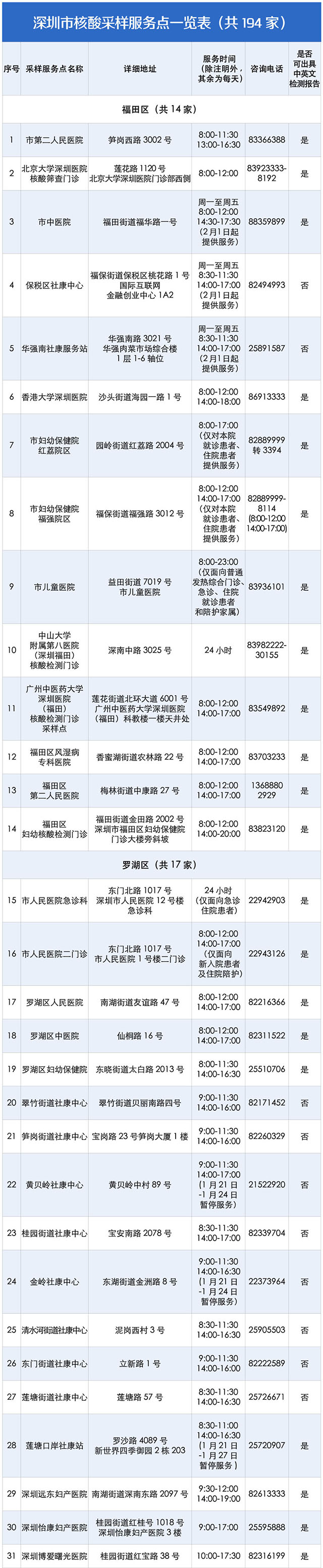2月5日前,深圳194个核酸采样点